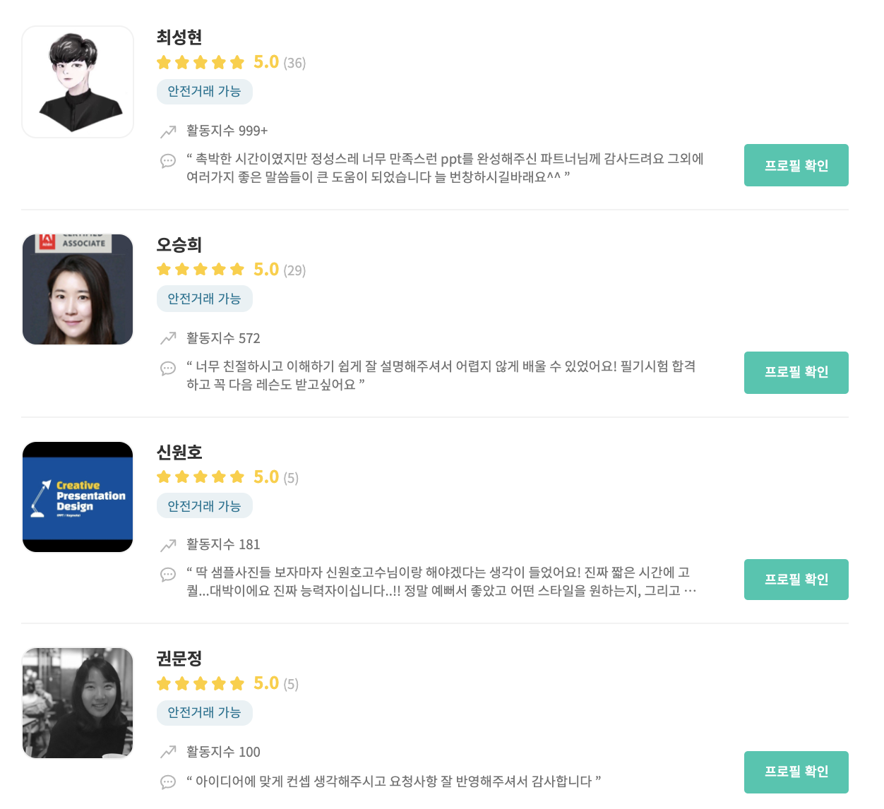 프레젠테이션 디자인 전문가의 프로필, 비용 비교하고 결정할 수 있어요.