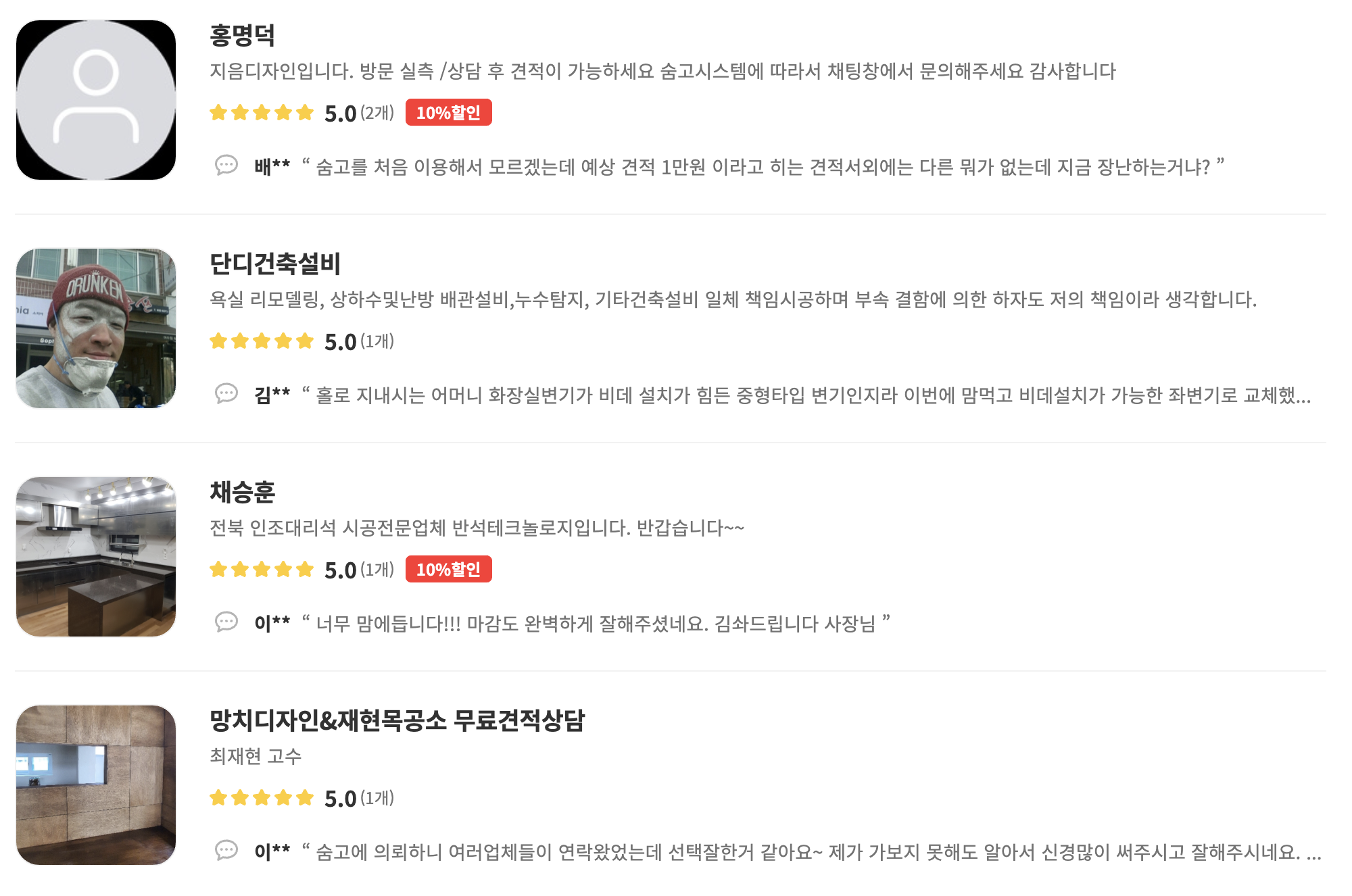 견적 대비 만족도에서 고수님 만한 분 없다고 생각합니다.