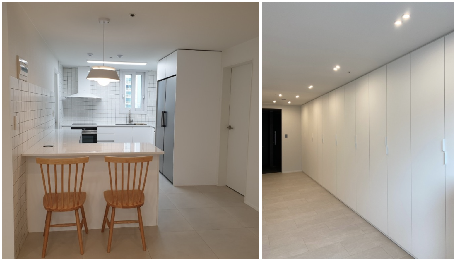 깔끔한 공간을 위해서는 수납이 정말 중요합니다. 수납공간은 벽면을 활용하는 것을 권장드립니다. 오픈 선반, 상부장, 하부장보다도 붙박이식 팬트리장을 추천드립니다. 팬트리장을 활용해야 공간 활용도 잘 할 수 있고 깔끔한 인테리어 효과도 볼 수 있습니다. 주방 인테리어를 할 때, 팬트리장을 하는 것이 필수 트렌드입니다!