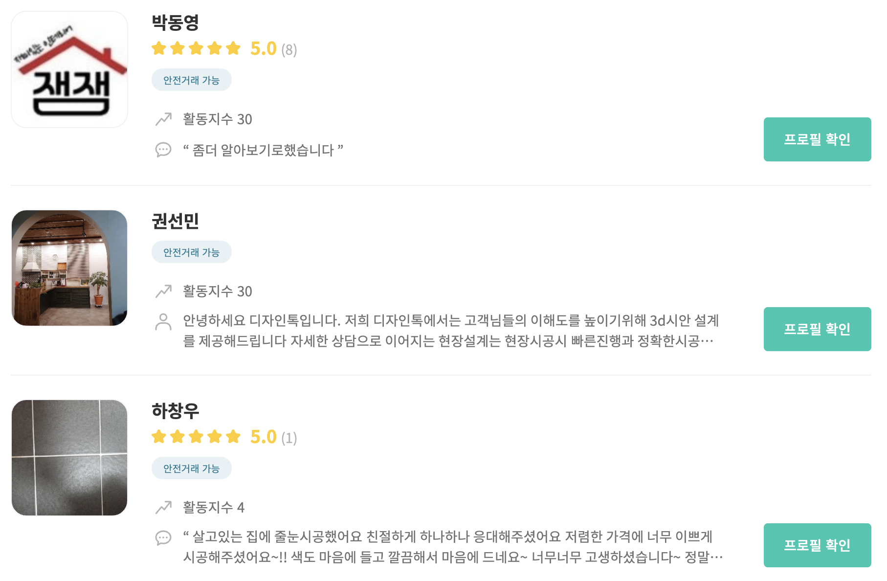 장판 시공 전문가의 프로필, 비용 비교하고 결정할 수 있어요.