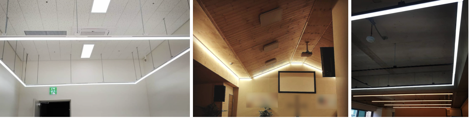 라인 조명은 등을 짠 다음에 기장을 짜서 등을 걸어 분위기를 연출하는 조명입니다. 지금까지는 사무실, 상업공간에서 많이 사용했습니다. 아무래도 라인 조명이 심플하고 깔끔하고, 너저분한 느낌이 없어서 많이 찾습니다. 라인 조명을 설치하면 밖에서 봐도 매장 내부가 잘 보입니다. 그런데 올 해부터 가정집에서도 라인 조명을 의뢰하는 고객님들이 늘고 있습니다. 가정집에서는 라인 조명을 거실 쪽에 많이 사용합니다. 라인 조명에는 3가지 정도의 색깔을 선택할 수 있습니다.